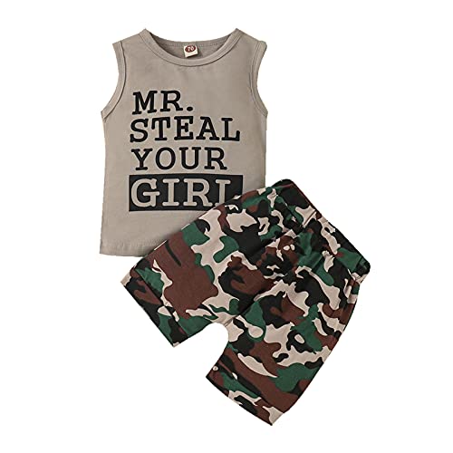 Loalirando Completo Bambino Estivo in Cotone 100% 0-4 Anni Tuta Bimbo 2 Pezzi Canotta Senza Maniche + Pantaloncini Mimetici Stampa a Lettere Speciali Regalo (Grigio02, 3-4 Anni)