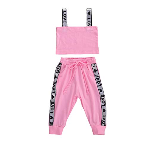 Loalirando Completo Sportivo Bambina Estivo Rosa Crop Top Canotta Senza Manica Stampa 'Love'+Pantaloni Sportivi a Vita Alta Bambina (Rosa, 1-2 Anni)
