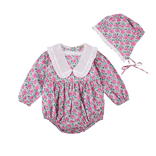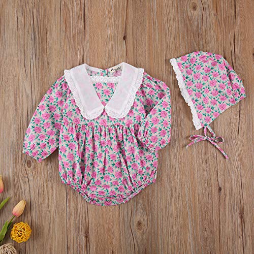 Loalirando Pagliaccetto a Manica Lunga Tutina Neonata in Pizzo Stampa Floreale + Cappello per Neonato (Rosa, 0-3 Mesi)