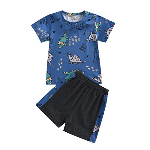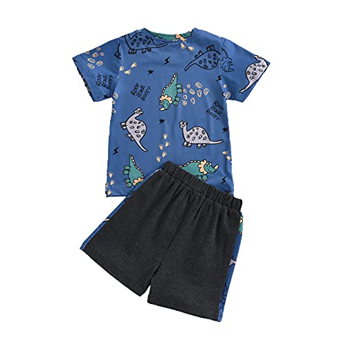 Loalirando 2 Pezzi Set Coordinato Magliette Estive per BambiniT-Shirt a Maniche Corte o-Collo con Stampa Dinosauro + Pantaloncini in Vita Elastica (Dinosauro Blu, 3-4 Anni)