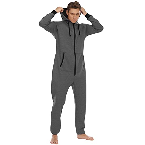 Loalirando Tuta Uomo Invernale Pigiama Intero Body Pagliaccetto Uomo Notte a Maniche Lunghe con Cappuccio, Abbigliamento da Casa con Tasca S-XXL (Grigio Scuro, Large)