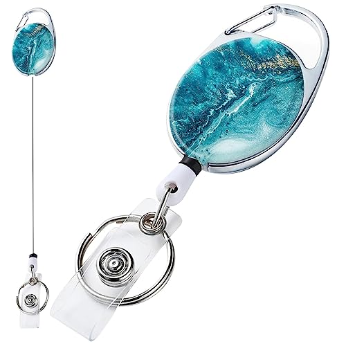 Loandicy Bobina per Badge in Marmo - Clip per Badge Portachiavi Retrattile | Robusta Clip per Bobina Retrattile salvaspazio per Badge Card