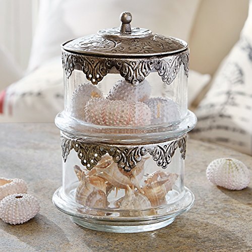 Loberon Contenitore in Vetro Leesha, Vetro, Ferro, A/Ø ca. 16/11 cm, Trasparente/Argento