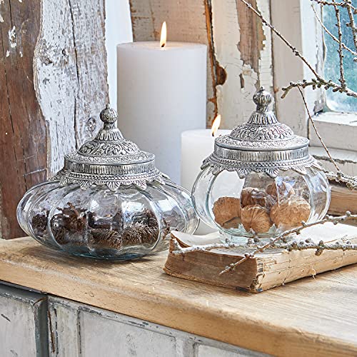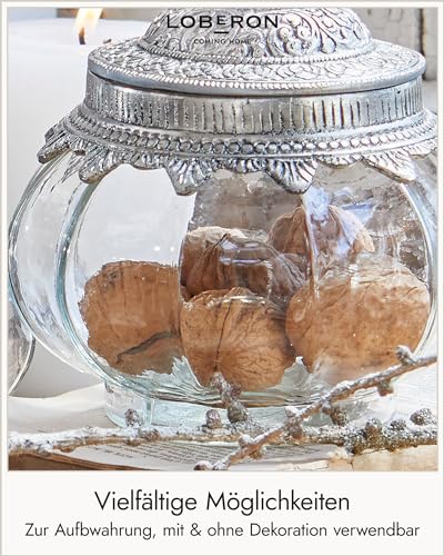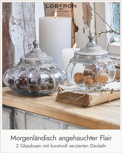 LOBERON Set di barattoli Osayi | Contenitori decorativi in vetro con coperchio | Realizzati in vetro soffiato e alluminio | Coperchi decorati | 2 bicchieri | Ø 13 cm e 18 cm