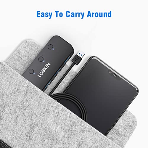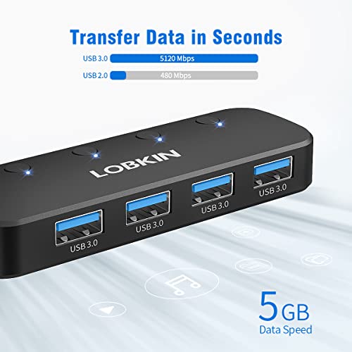 LOBKIN USB 3.0 Hub, 4 Port USB Hub with 60 cm Extension Cable, Multiple Ports, Independent Power Switch and LED Display, USB Port Expander, USB Splitter for Laptop, PC, PS4 Mac