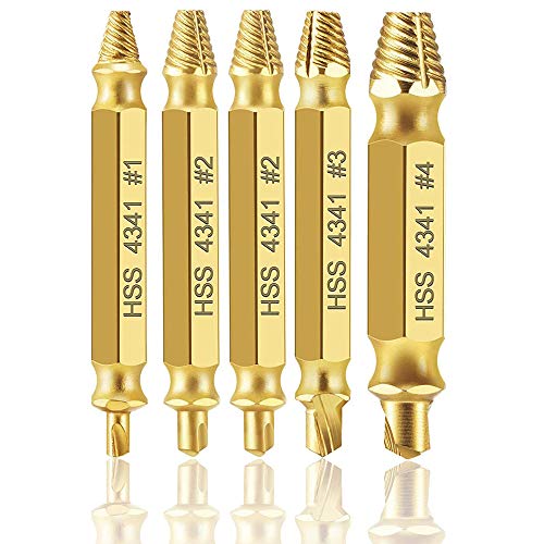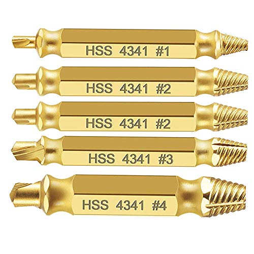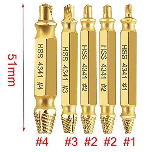 Loboo Idea - Set di estrattori per viti danneggiate HSS 4341, kit di estrattori per viti spogliate e rotte, kit di estrattori per bulloni (5 pezzi, oro)