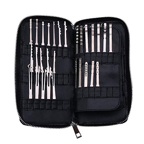 Set di strumenti Lockpick Contiene: kit di raccolta serrature da 64 pezzi, chiavi di tensione da 12 pezzi, impugnatura di metallo sostituibile da 5 pezzi in diverse dimensioni.