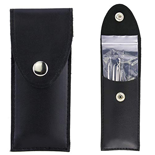 Loboo Idea 15 pezzi Set di grimaldelli professionali, 12 pezzi di grimaldelli, 2 pezzi di chiave di serraggio, una pinzetta e una custodia a portafoglio in pelle
