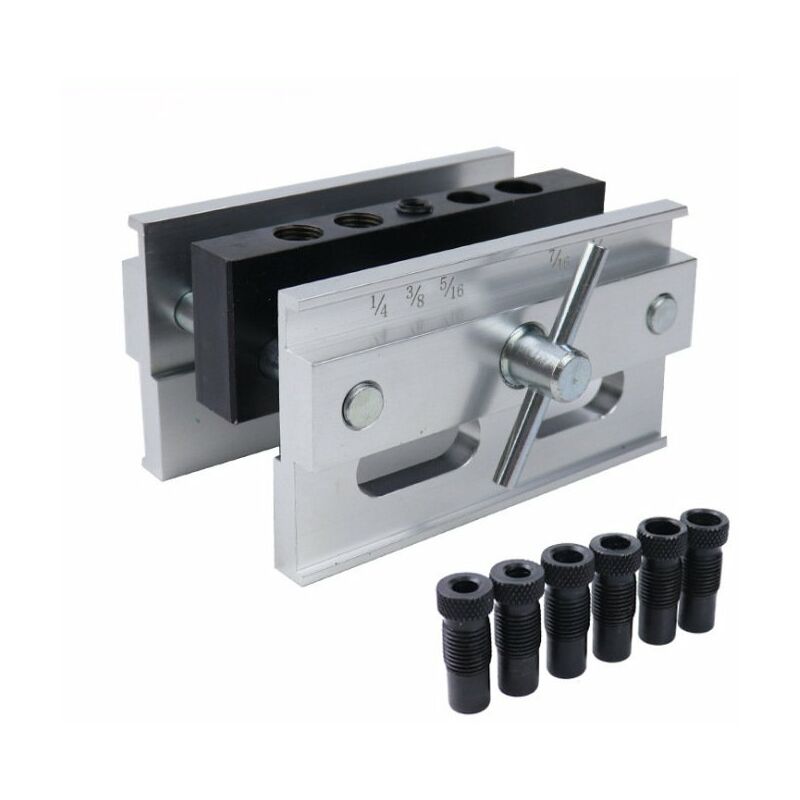 Centra automaticamente su un cerchio quadrato o irregolare La dimensione della punta è 1/4"×2, 5/16"×2, 3/8"×2 Alluminio corpo con viti in acciaio al carbonio temprato Dimensioni: 120×70×10-55mm Materiale premium: realizzato in lega di alluminio Alluminio premium, durevole e resistente all'usura resistente, non facile da rompere. Il localizzatore di punte per la lavorazione del legno non si arrugginisce né si rompe e ha una lunga durata. Facile da usare: con una dima per fori tascabili, è conveniente e facile da praticare rapidamente fori verticali per nascondere le viti nei mobili in legno, creare fori precisi per la lavorazione del legno, facile da usare, piccolo e portatile, conveniente per la lavorazione del legno. Ampia applicazione: facile da usare, adatto per la lavorazione del legno e il posizionamento Scala di alta precisione, altezza di foratura in altezza e profondità del foro facili da regolare.