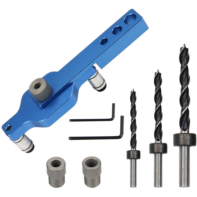 Specifiche: Tipo: Set A (senza punte da trapano)/ Set B (con punte da trapano in acciaio al carbonio)/ Set C (con punte da trapano in acciaio ad alta velocità) (opzionale ) Colore: blu Materiale: lega di alluminio Dimensione foro perforato: 6/8/10 mm Confezione Dimensioni: 140 * 90 * 30 mm/ 5,5 * 3,5 * 1,2 pollici > Set C: 340 g/ 12,0 once Lista di imballaggio: 1 * Drill Locator 3 * Boccola in metallo 3 * Punta da trapano 2 * Chiave inglese