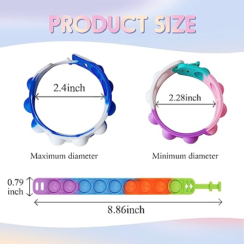 ☑️ 【Giocattoli Pop Fidget】Riceverete 12 pezzi di braccialetti pop, con una lunghezza di 22,5 cm/ 8,86 pollici e una larghezza di 20 mm/ 0,79 pollici. Il braccialetto pop LOCCY ha un design unico, basta premere le bolle verso il basso per ottenere un leggero suono di schiocco. Sono inoltre ricchi di colori, in materiale morbido, comodi da indossare, regolabili in lunghezza, e possono essere regolati in base alla situazione reale. La maggior parte dei bambini e degli adulti possono utilizzarlo.