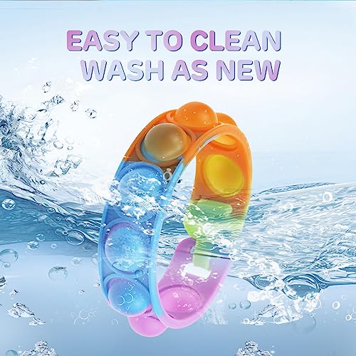 ☑️ 【Materiale Premium】Il braccialetto LOCCY push pop bubble è realizzato in materiale siliconico di alta qualità, la superficie è molto liscia, il braccialetto è elastico e morbido, sicuro per i bambini. Leggero e facile da trasportare, è possibile indossare il braccialetto in qualsiasi momento Fidget Toys, la scelta migliore per i giocattoli. Sono sicuri per bambini e adulti. Potete giocare con il vostro bambino in tutta sicurezza!