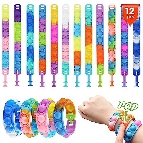 LOCCY 12 pezzi Pop it Bracelet, Pop Bubble Fidget Bracelet Toy Bracciale Fidget Toy Anti Stress Bubble Fidget Bracelet Giocattolo per Bambini e Adulti