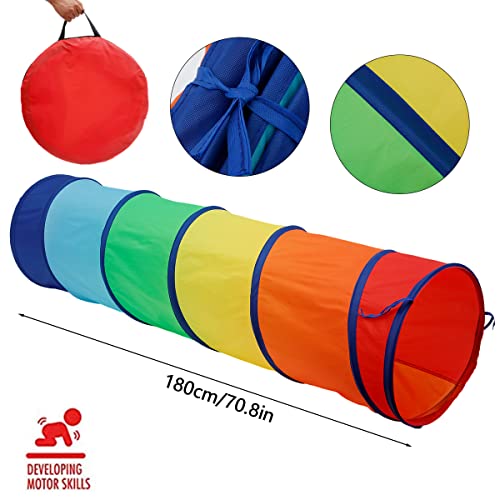[Tenda a tunnel colorata] Il tunnel dei nostri bambini è progettato con 6 tipi di tessuti colorati che possono attirare l'attenzione del bambino e arricchire la percezione del colore del bambino, il nostro tunnel di tracciamento è perfetto per la scuola materna, la scuola materna, l'asilo o le attività interne o all'aperto, come il cortile, il parco, il parco giochi.