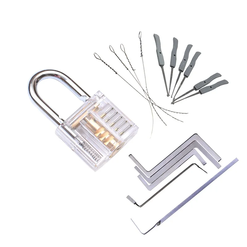 3 In 1 Set Locksmith Tools Practice Transparent Lock Kit With Broken Key Extractor Wrench Tool Removing Hooks Hardware