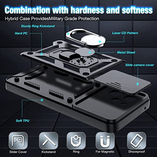 NC LOCLOUD - Cover per iPhone 12, protezione della fotocamera, con lente scorrevole, cover e supporto ad anello, custodia in silicone duro e TPU, antiurto, antigraffio, colore: nero