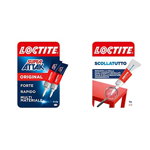 Loctite Super Attak Original Bipack, colla liquida trasparente in confezione convenienza & Scolla Tutto, rimuovi colla in tubetto per tutte le superfici, per rimuovere qualsiasi cianoacrilato