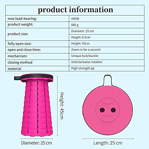 Portatile e leggero: la confezione misura solo 25 cm di diametro e pesa solo 1,0 kg e con cuscino. Questo sgabello retrattile è portatile e leggero, piccolo e compatto da mettere in valigia o riporre. La cinghia regolabile rende la sedia facile da trasportare in mano o appesa alla spalla. Sedia ideale per ovunque tu vada e ogni volta che vuoi sederti, aggiungi un morbido cuscino per una sensazione perfetta