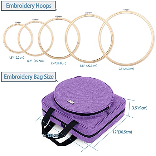 LoDrid Borsa per Progetti di Ricamo, Borsa per Riporre Oggetti di Ricamo con Kit di Ricamo, Custodia Portatile per Lavori Artigianali con Kit per Punto Croce per Principianti, Adulti, Viola