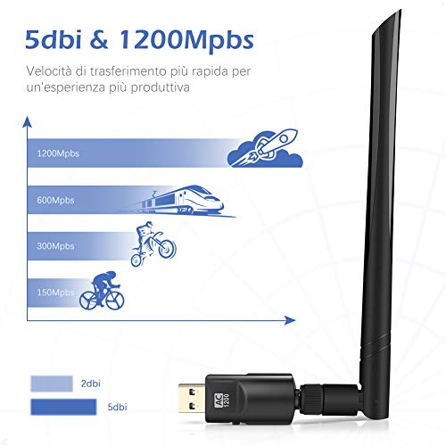 LOETAD Adattatore Antenna WiFi USB 1200 Mbps Adattatore WiFi USB 5dBi Ricevitore WiFi con USB 3.0 Dual Band(5.8G/866Mbps + 2.4 G/300Mbps) Compatibile con Windows 10/8/7 / Vista/XP/Mac