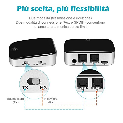 LOETAD Trasmettitore e Ricevitore 2-in-1 Bluetooth 4.1 con SPDIF/TOSLINK Digital Optical AUX 3,5mm Adattatore Audio Wireless per Cuffie Sistemi Stereo Altoparlanti Smartphone TV Computer Tablet