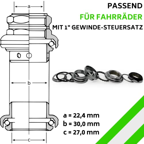 ✅ 1 pollice - Set sterzo da 1 pollice (diametro 22,2 x 30 x 27 (1" x 24T)) per forcella con filettatura.