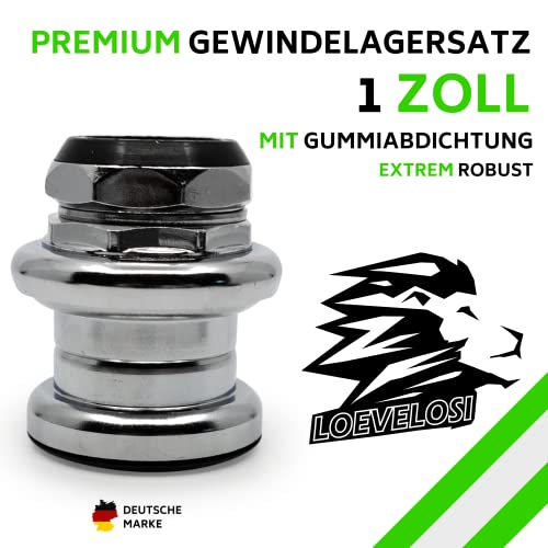 LOEVELOSI Set di sterzo per bicicletta da corsa cromato, con filettatura da 1 pollici, in stile retrò, testa di controllo, cuscinetto da 1", colore: argento