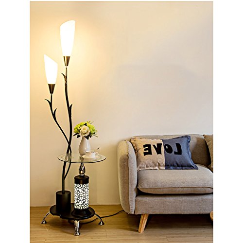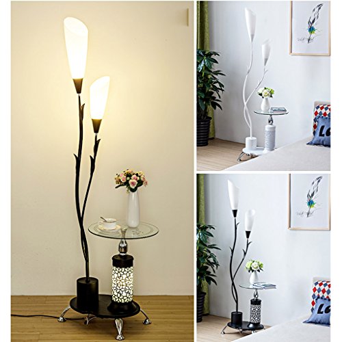 LOFAMI Lampada da terra moderna, con ripiani in vetro, 2 paralume in acrilico bianco chiaro, decorazione in metallo lampada per soggiorno camera da letto, H171CM ( Color: Black )