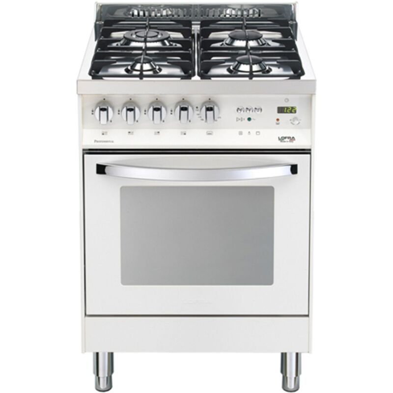 Piano cottura - finitura acciaio inox lucidato a specchio - 4 fuochi a gas valvolati III Serie di cui 1 tripla corona - accensione elettronica integrata alla manopola - protezione totale Gas-Stop - griglie in ghisa Forno - multifunzione elettrico a 9 programmi - capacità 66 lt - grill elettrico - programmatore elettronico digitale - porta con 3 vetri di cui 2 riflettenti per una minore dispersione di calore - vetri interni della porta asportabili per facilitarne la pulizia - guide forno estraibili - ventola tangenziale per raffreddamento cruscotto - piedini regolabili in altezza e in profondità Lofra PBP66MFT/C. Tipo di prodotto: Piano cottura, Colore del prodotto: Bianco, Tipo di controllo: Manopola. Tipo di piano cottura: Gas, Numero totale elementi piano cottura: 4 Fornello(i), Tipo di superficie superiore: Acciaio inossidabile. Dimensione del forno: Media, Sorgente di alimentazione del forno: Elettrico, Capacità netta del forno: 66 L. Tipo di timer: Digitale. Classe efficienza