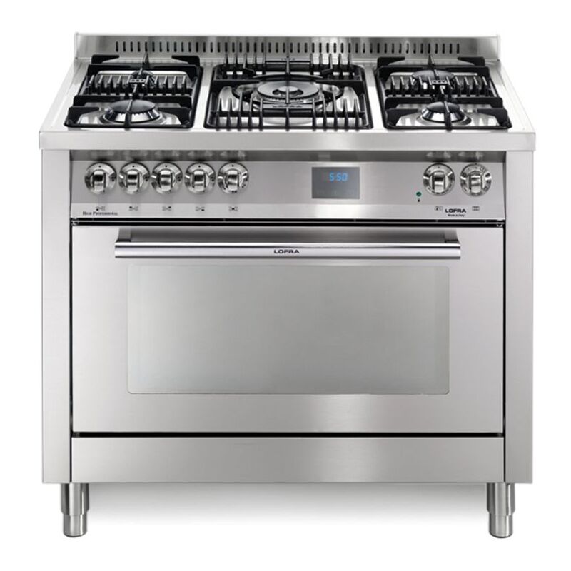 Piano cottura - finitura acciaio inox satianto - 5 fuochi a gas valvolati III Serie di cui un Dual - accensione elettronica integrata alla manopola - protezione totale Gas-Stop - griglie in ghisa Forno - multifunzione elettrico a 9 programmi - capacità 94 lt - grill elettrico - programmatore elettronico digitale - porta con 3 vetri di cui 2 riflettenti per una minore dispersione di calore - vetri interni della porta asportabili per facilitarne la pulizia - guide forno estraibili - ventola tangenziale per raffreddamento cruscotto - piedini regolabili in altezza e in profondità - smaltatura forno easy to clean Lofra PG106MFT/UI. Tipo di prodotto: Cucina freestanding, Colore del prodotto: Acciaio inossidabile, Tipo di controllo: Manopola. Tipo di piano cottura: Gas, Numero totale elementi piano cottura: 5 Fornello(i), Numero di fornelli: 5 Fornello(i). Dimensione del forno: Largo, Sorgente di alimentazione del forno: Elettrico, Capacità netta del forno: 94 L. Tipo di timer del forno