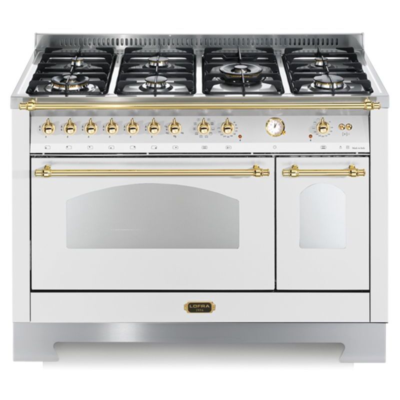 Piano cottura - finitura acciaio inox satinato - 7 fuochi a gas valvolati III Serie di cui 2 tripla corona - accensione elettronica integrata alla manopola - protezione totale Gas-Stop - griglie in ghisa Forno principale multifunzione elettrico a 9 programmi capacità 94 lt misure 65x35x40 cm grill elettrico orologio di inizio e fine cottura porta con 3 vetri di cui 2 riflettenti per una minore dispersione di calore vetri interni della porta asportabili per facilitarne la pulizia guide forno estraibili ventola tangenziale per raffreddamento cruscotto smaltatura forno easy to clean piedini regolabili in altezza e in profondità e zoccolo di serie con zoccolo montato altezza 90 cm Forno secondario elettrico statico capacità 30 lt girarrosto misure 35x20x41 cm guide forno fisse porta con 3 vetri di cui 2 riflettenti per una minore dispersione di calore vetri interni della porta asportabili per facilitarne la pulizia smaltatura forno easy to clean Lofra RBPD126MFT+E/2AEO. Tipo di prodotto