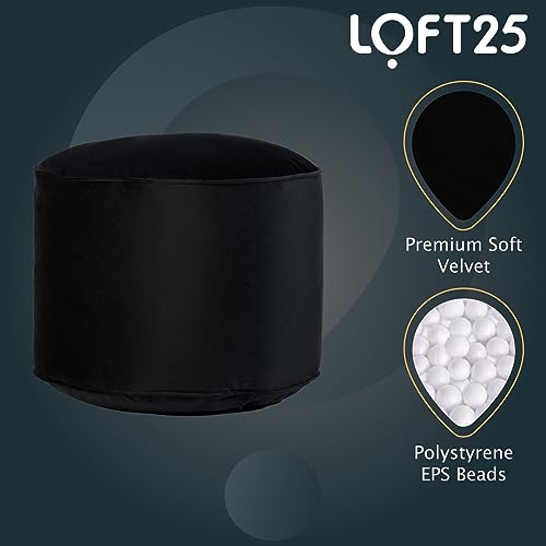 Loft 25 Pouf a Rotondo in Velluto | Pouf Poggiapiedi Imbottito per Soggiorno e Interni | Pouf a Sacco per la Casa | Design Ergonomico per Sostegno del Corpo | Resistente e Confortevole (Black)