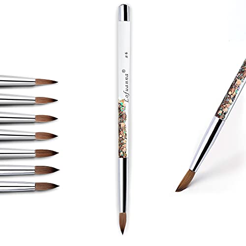 Lofuanna Pennello per Unghie per Polvere Acrilica, Pennello Rotondo per Nail Art per Strumento Manicure Pedicure, Pennello per Unghie Acrilico con Manico Glitter Liquido Oro Rosa(6)