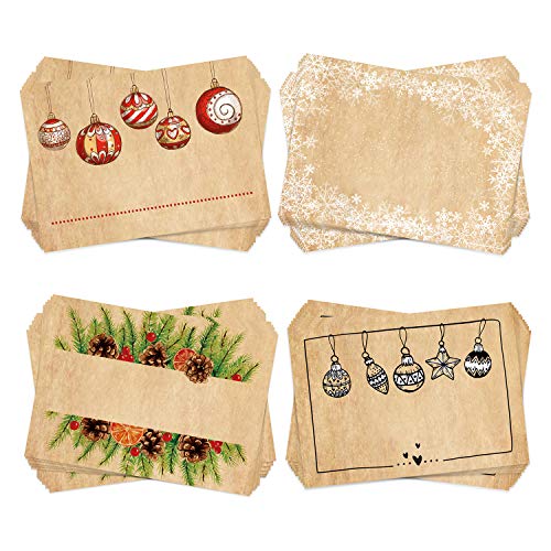 Logbuch-Verlag 4x25 etichette adesive natalizie in carta kraft vintage color bianco beige verde rosso nero adesivi natalizi regali confezione regalo Natale decorare 7 x 5 cm