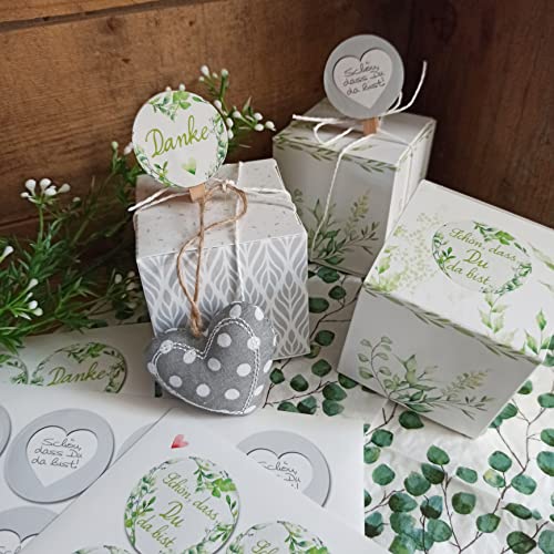 Le etichette sono disponibili in molti altri colori e i sacchetti di carta abbinati, piccole scatole e scatole per confezionare i regali. Produzione propria, proprio design. Stampa di qualità dalla Baviera.