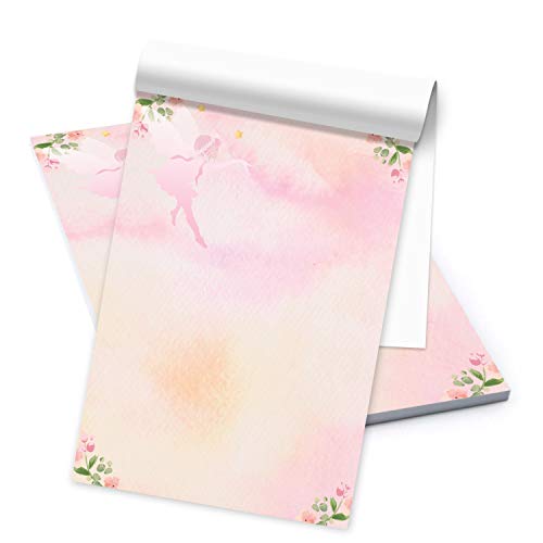 Blocco per lettere dal design amorevole in formato DIN A5 per scrivere, fare il fai da te e prendere appunti. Un bel blocco in rosa discreto decorato con una fata e piccoli fiori.