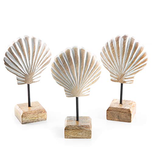 Logbuch-Verlag 3 conchiglie da appoggiare in legno, 17 cm, colore bianco naturale, decorazione per il bagno, decorazione marittima