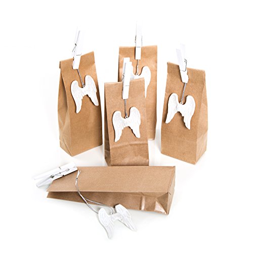 Logbuch-Verlag set confezione regalo: 5 sacchetti di carta color marrone 7 x 20,5 x 4 cm + 5 ciondoli color bianco a forma di ali d'angelo + 5 mollette bianche confezione natalizia
