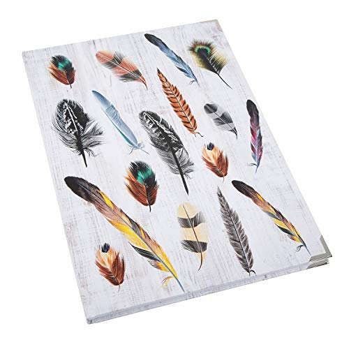 Taccuino XXL bianco antico effetto legno chiaro vecchio con diverse piume colorate da personalizzare. Diario A4 robusto con copertina rigida, rilegatura a filo, angoli metallici color argento per proteggere al meglio il libro e 164 pagine spesse vuote per una scrittura perfetta - scrivibile con ogni tipo di penna. Il taccuino ha fogli bianchi, in modo che sia liberamente utilizzabile per tutti. Lo abbiamo realizzato così per rispondere ai desideri di tutti i nostri clienti.