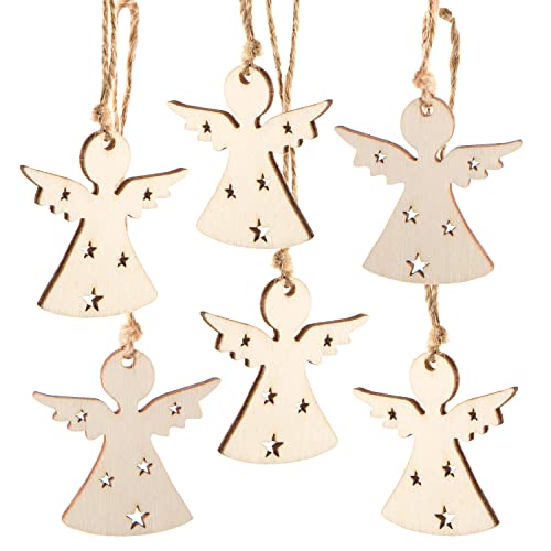 Logbuch-Verlag 6 piccoli ciondoli a forma di angelo custode, in legno, 5 cm, decorazione natalizia