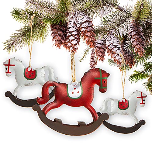 Bellissimi ciondoli natalizi a forma di cavallo a dondolo. Colore: rosso, bianco.