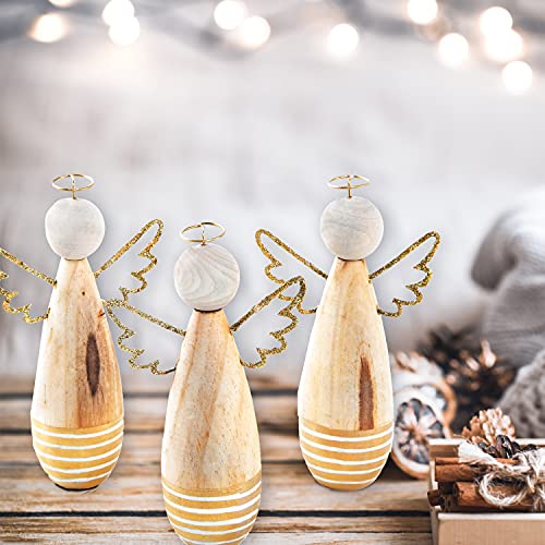 Logbuch-Verlag 3 statuette a forma di angeli color oro bianco marrone in legno decorazione natalizia angelo Natale Avvento Feste 14 cm