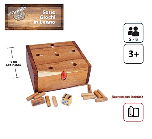 Dimensioni del gioco: 11 x 10 x 5 cm. Versione da tavolo e da viaggio! Legno Teak