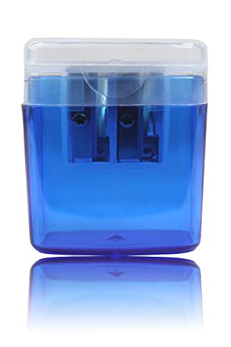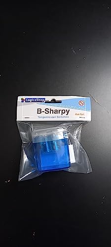 LogicaShop B-Sharpy Temperino con Serbatoio Piccolo per Destrimani, Temperamatite per Bambini Doppio Foro, Temperamatita per Matita Occhi Colorato, Temperino 2 Fori con Contenitore (Blu