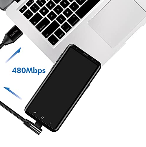 LogiLink Cavo di collegamento USB 2.0, da USB (tipo A) a USB (tipo C) ad angolo di 90°, nero, 0,3 m