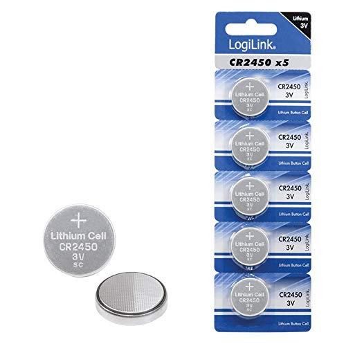 LogiLink CR2450B5 - Confezione da 5 pile a bottone al litio, 3 V, colore: Argento