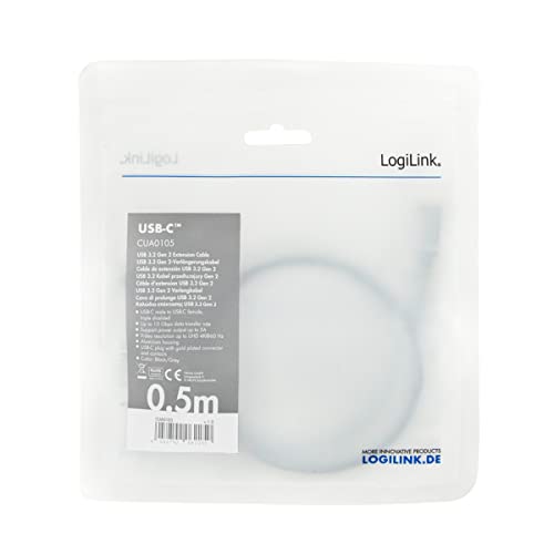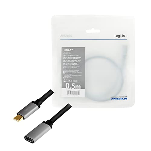 LogiLink CUA0105 - Cavo di prolunga USB 3.2 Gen 2 4K/60 Hz, in alluminio, nero/grigio, 0,5 m