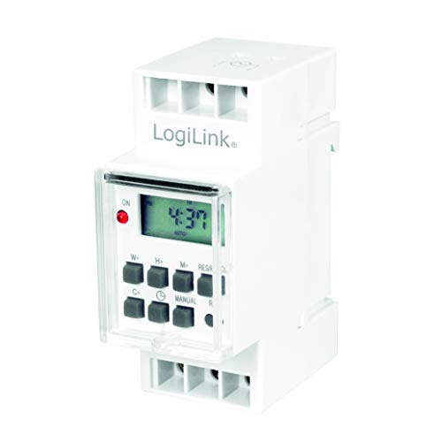 LogiLink ET0010 ET0010-DIN-Rail - Timer digitale con display LCD per commutare facilmente ad esempio neon, scaldabagno, lanterne, impianti di irrigazione, ecc.