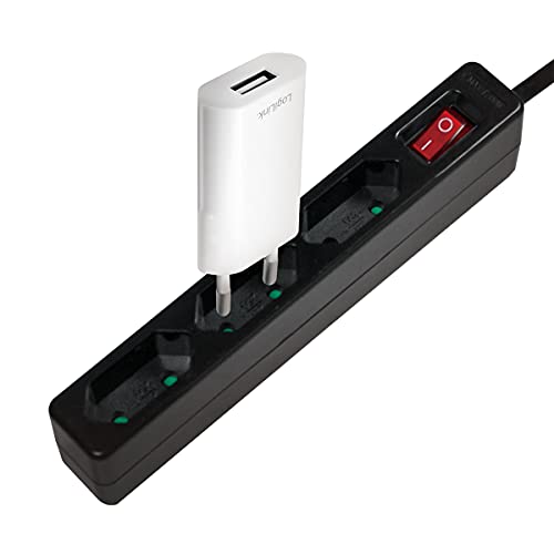 LogiLink LPS230B - Ciabatta elettrica a 3 prese (presa europea), CEE 7/16, con interruttore on/off, con sicurezza per bambini, colore: Nero