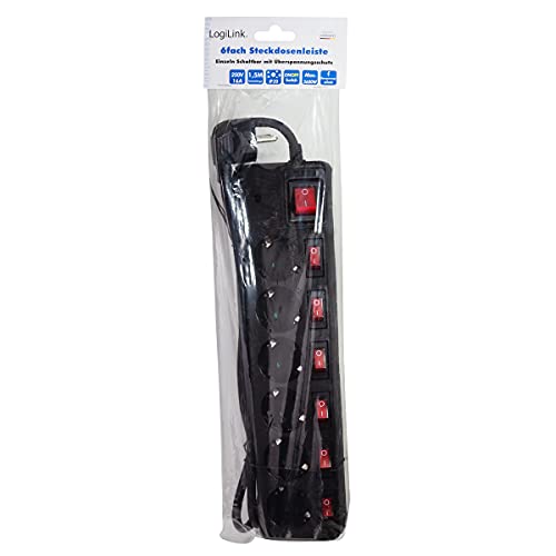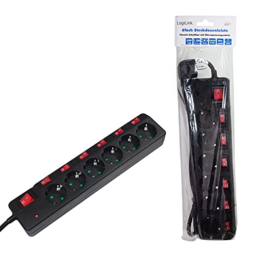 LogiLink LPS233 prolunghe e multiple Interno 1,5 m 6 presa(e) AC Nero